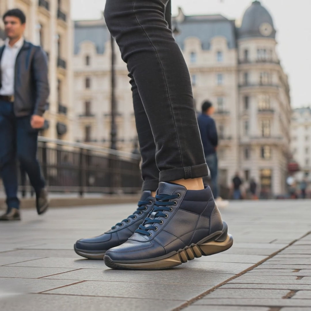 Ghete sport barbati din piele naturala bleumarin 7780