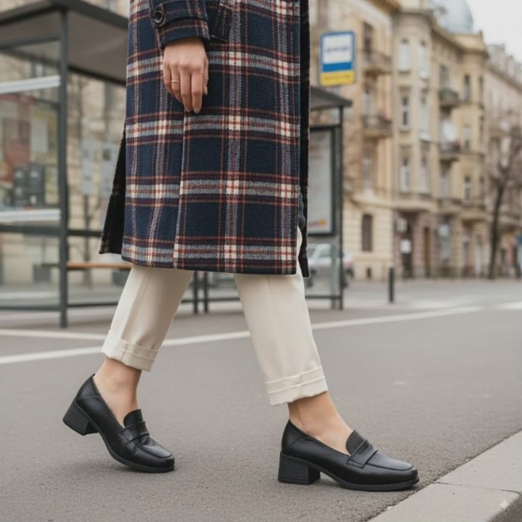 Pantofi casual dama din piele naturala neagra cu toc gros 4.5 cm 18670