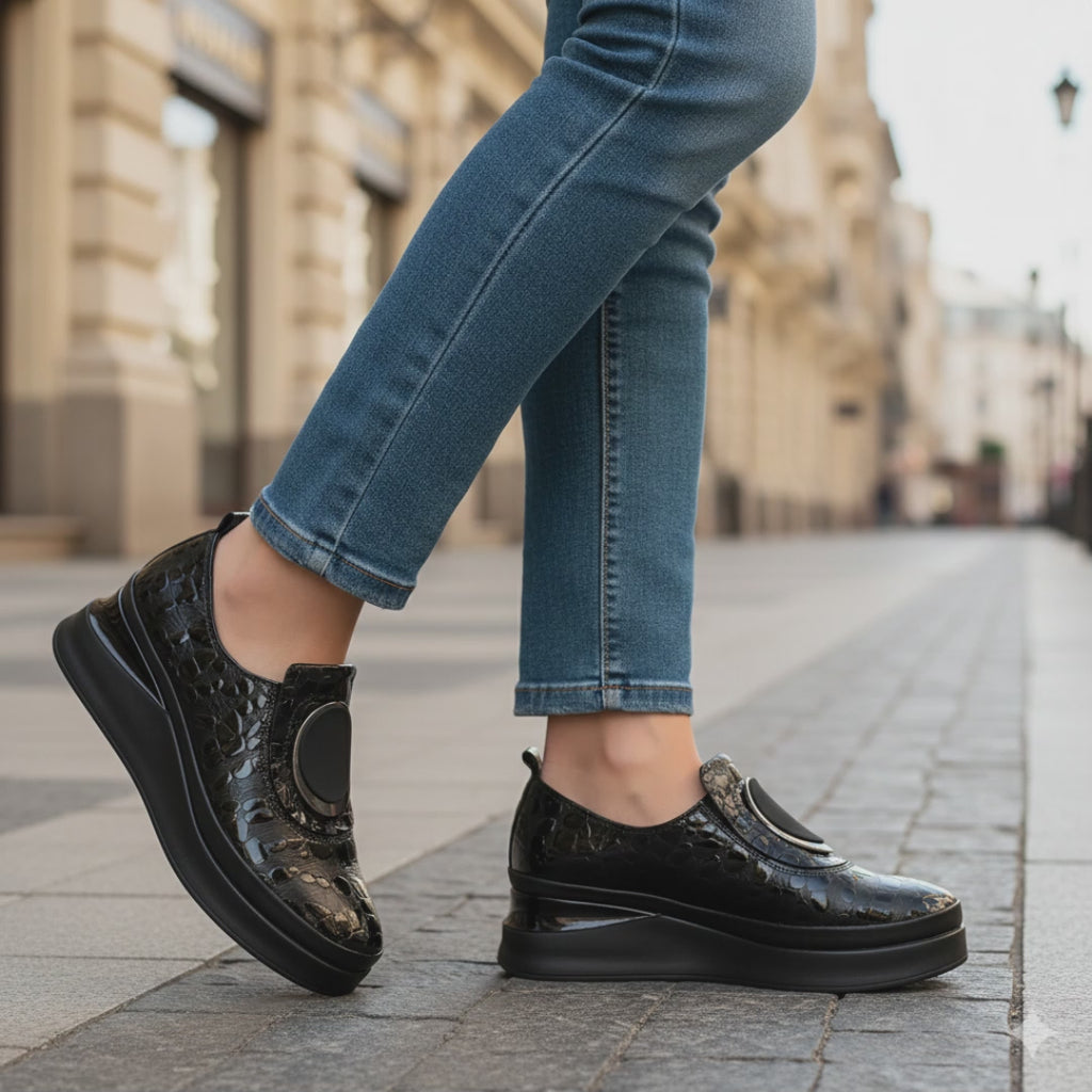 Incaltaminea noastra este construita cu confortul in minte, urmeaza curbele naturale ale piciorului si are o talpa rezistenta la uzura pentru a va mentine confortabil si la moda pe tot parcursul zilei, cat si al noptii.