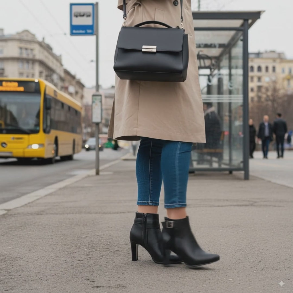 Botine Dama Piele Negre Toc 8 Cm 10595