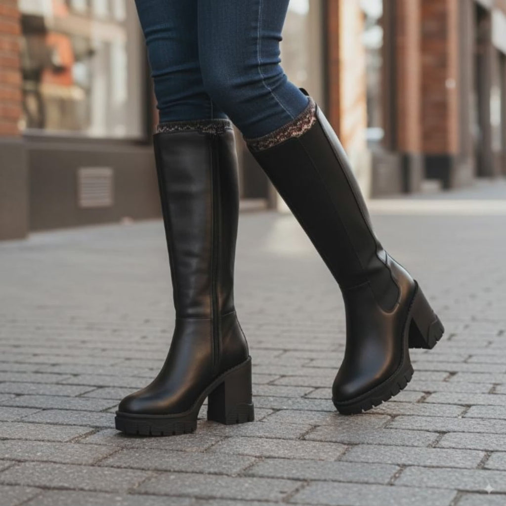 Cizme dama din piele naturala neagra cu toc gros 9 cm 17053