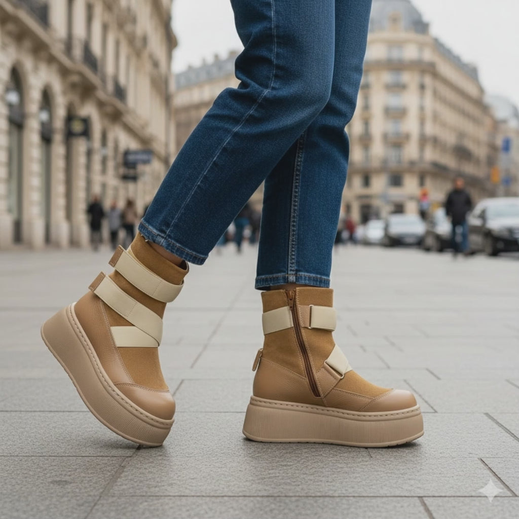 Ghete dama din piele naturala bej cu talpa inalta 17141