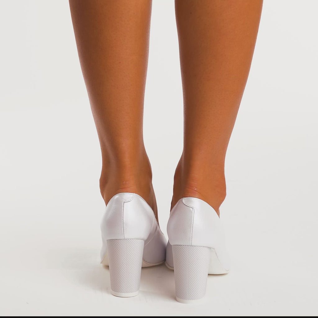 Pantofi dama din Piele Naturala Alba 4123 se caracterizeaza prin varf rotunjit, tocuri stiletto și design simplu, elegant. Cu siguranța, vor adauga un plus aspectului tau elegant la serviciu, intalnire, iesire sau in viața de zi cu zi.