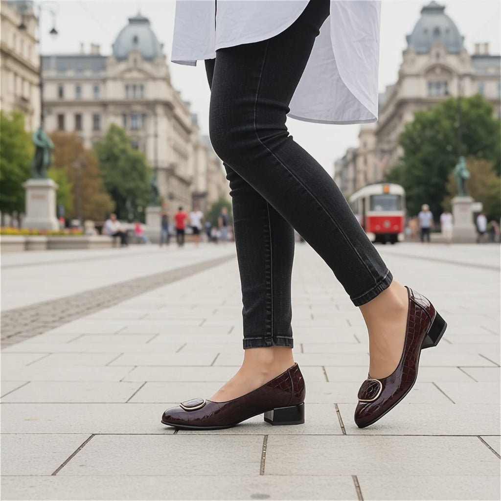 Pantofi dama din piele naturala bordo cu toc mic 3.5 cm 18603