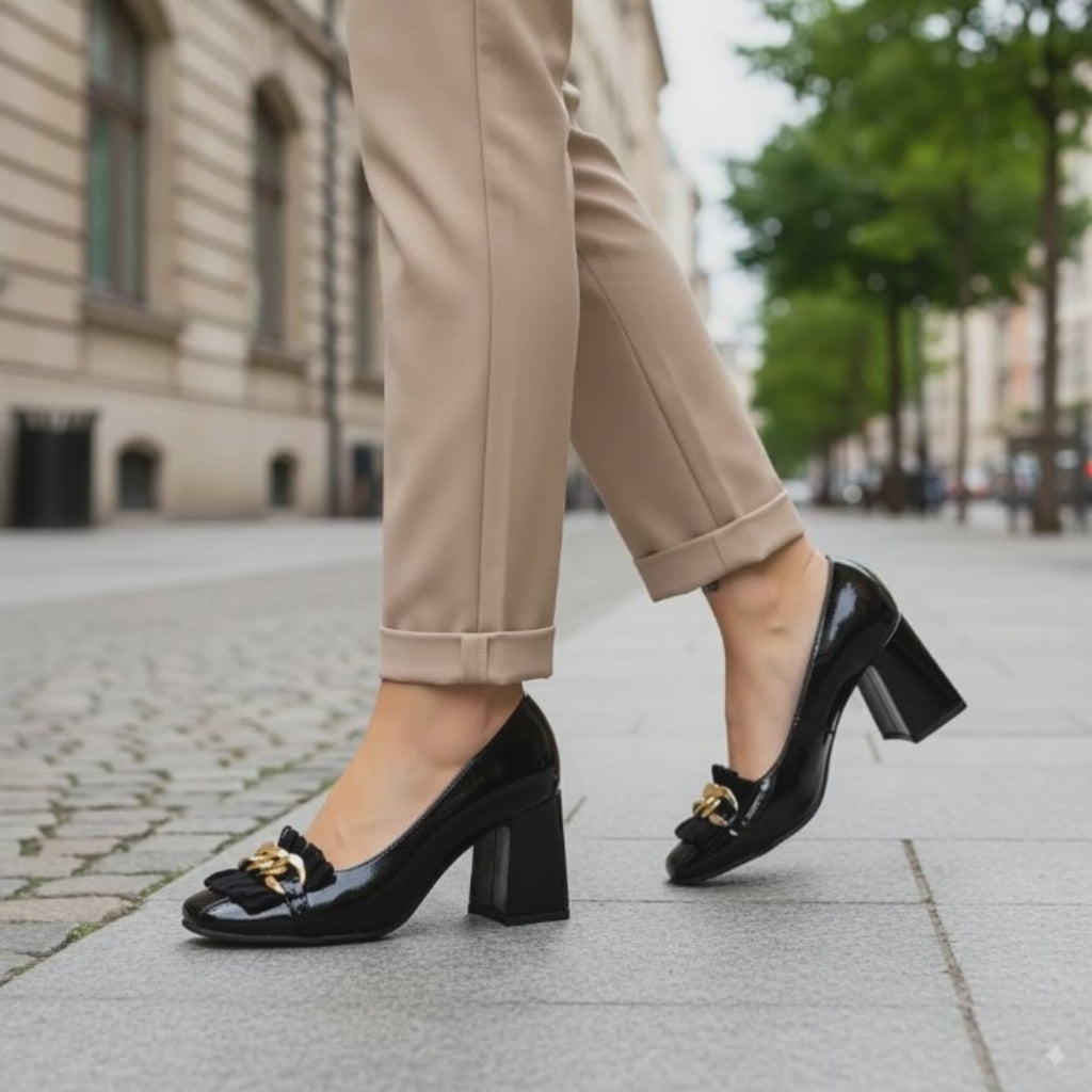 Pantofi dama din piele naturala neagra cu toc gros 8 cm 15926